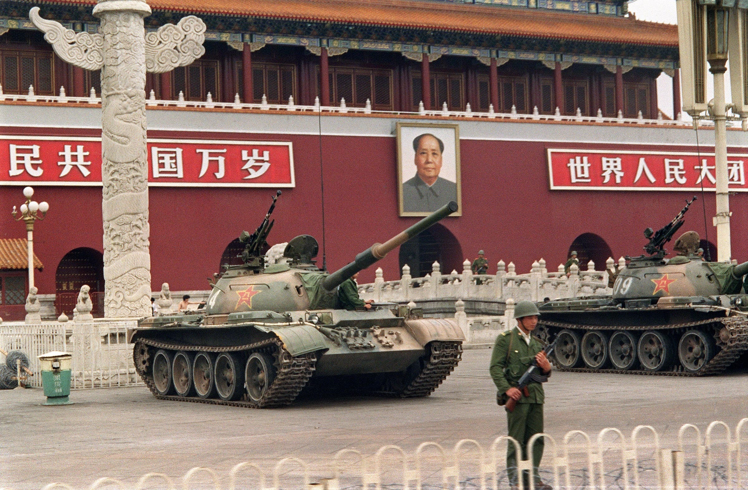 천안문 광장 대량 학살에 투입되었던 중국 공산 인민군대의 59식 전차대대 - 1989년 6월 11일