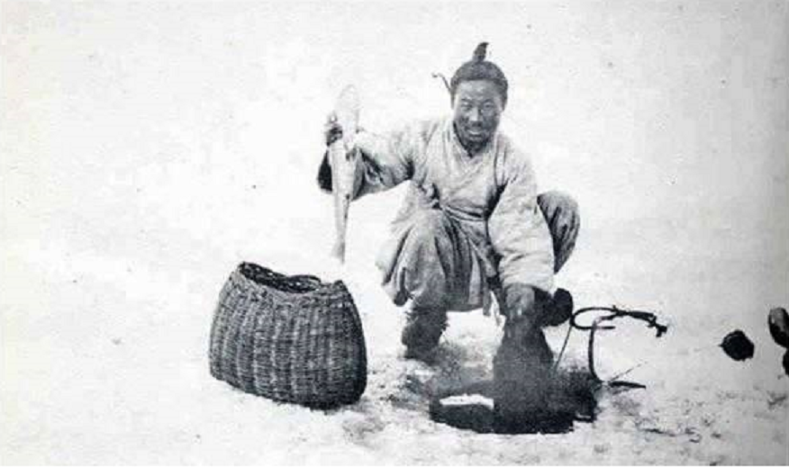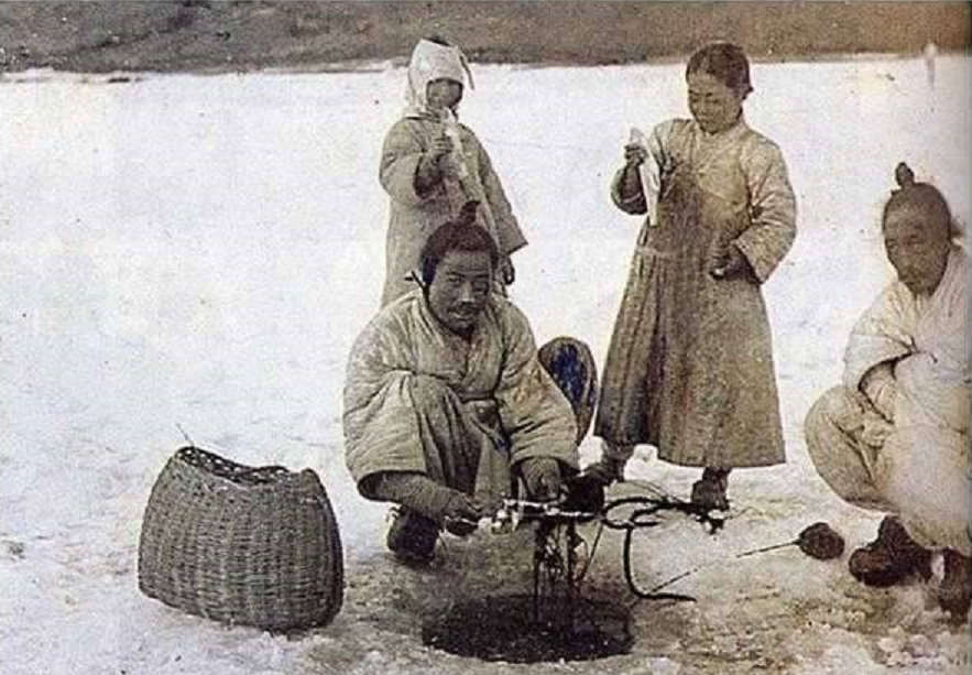 구한말 대한제국 시대 1904년 겨울 얼어 붙은 한강의 잉어 낚시꾼