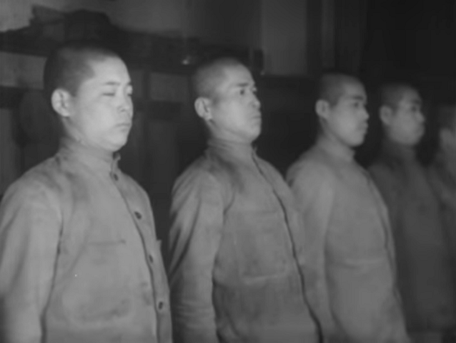 에시타 타케지(江下武二)를 비롯한 세 명의 전사자들이 중국 상하이 외곽 전투시 중국군 철조망 지대를