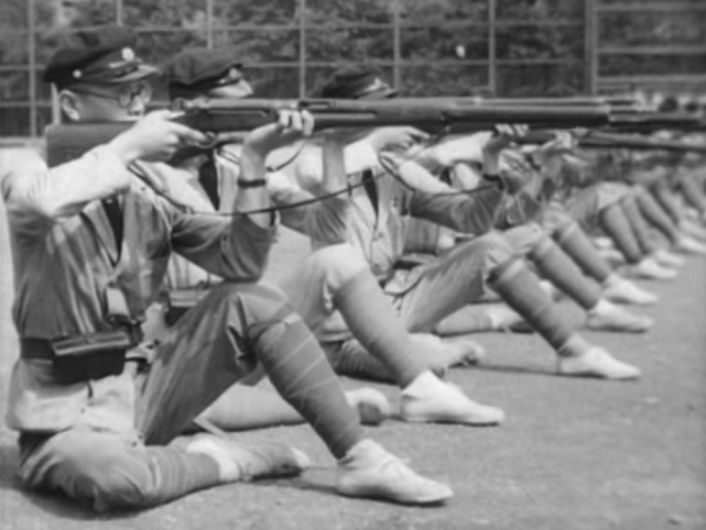 다음 세대 일본군 병사들을 만들어 내기 위한 청소년기 연령층 학생들의 집총 제식 훈련및 단체 합숙 군사훈련